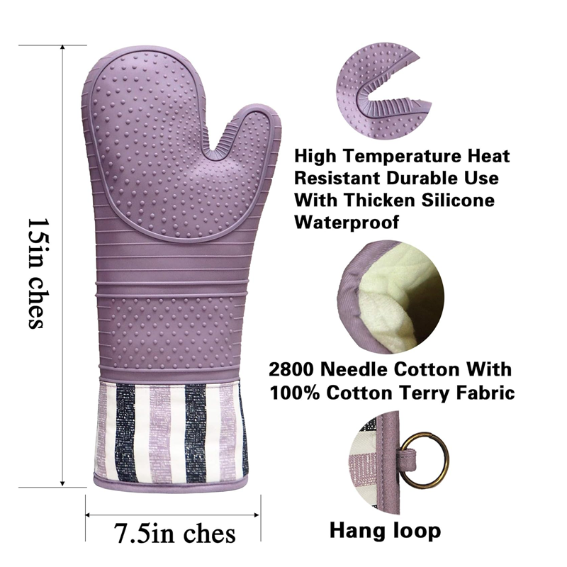 Heat-resistant 550-degree oven mitts – Food safe (Purple gloves)